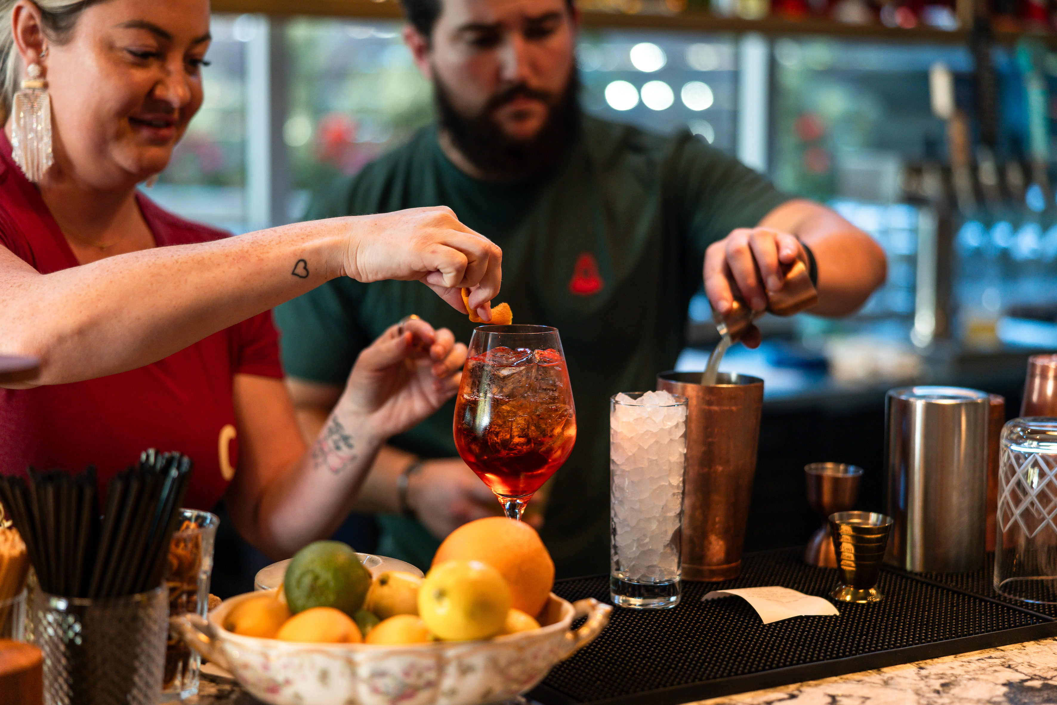 Moments of delight—limoncello drops, communal tables, a space that invites interaction.